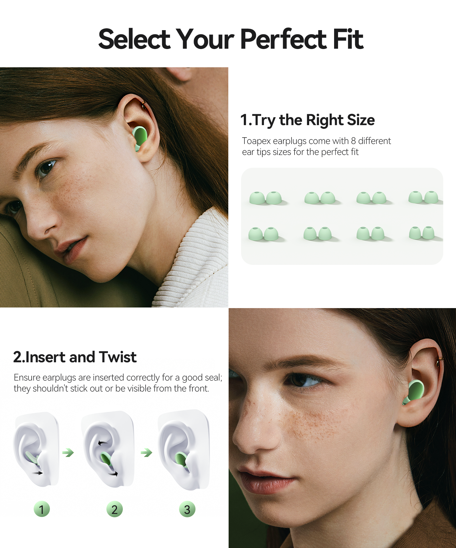 - Cloud-like Sleep Comfort & Fit: Made with ultra-soft silicone, earplugs for sleep reduces pressure on the ear, ensuring comfort - whether you're tossing, or side-sleeping. Innovative 3D ergonomic design molds to your ear canal, sleeping ear plugs providing a snug, secure fit—ideal for side sleepers, active concert-goers, or travelers. With 8 pair eartips (2 pairs XS, S, M, L), noise cancelling ear plugs fit 95% of ear shapes. Enjoy all-day comfort with our ear plugs for sleeping noise cancelling